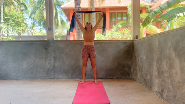 Equipment needed: Yoga mat and sarong, towel, or yoga strap -